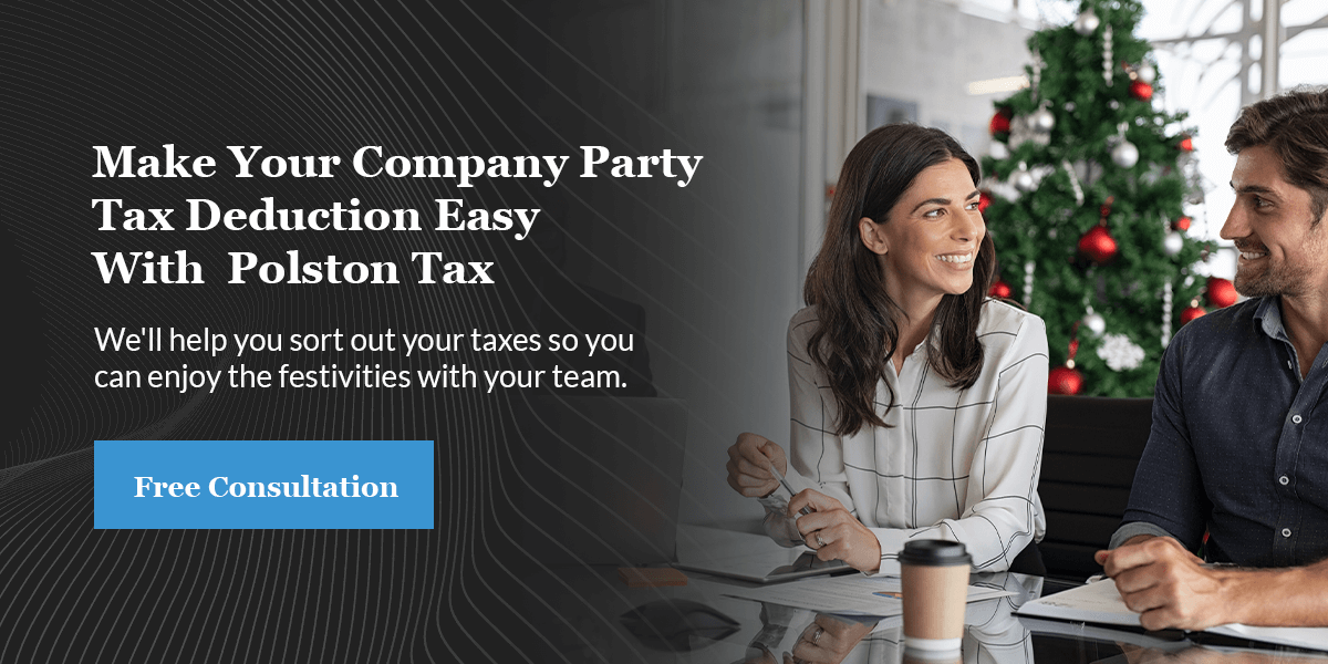 If you’re preparing to throw a holiday party for your employees, you should know how much you can legally write off as a tax deduction. Contact Polston Tax Resolution & Accounting to schedule a free consultation, or call us at 844-841-9857 today! We’ll help you sort out your taxes so you can enjoy the festivities with your team.